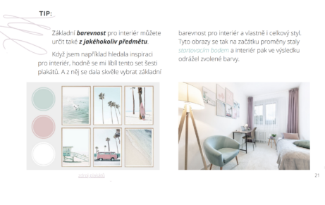 Plácala jsem se v proměně několik týdnů. Po přečtení ebooku je během pár dnů jasno. Nadchly mě tipy na nalezení inspirace, výběr stylu a vytvoření desky v power pointu. Teď máme vše pěkně vizualizované a ladíme detaily. Je super vidět vybrané plakáty na obrázku, s možností změny a ne se rozčilovat nad nesprávným výběrem, když už visí na zdi. Váš návod na proměnu interiéru mě skutečně nadchnul a nastartoval.